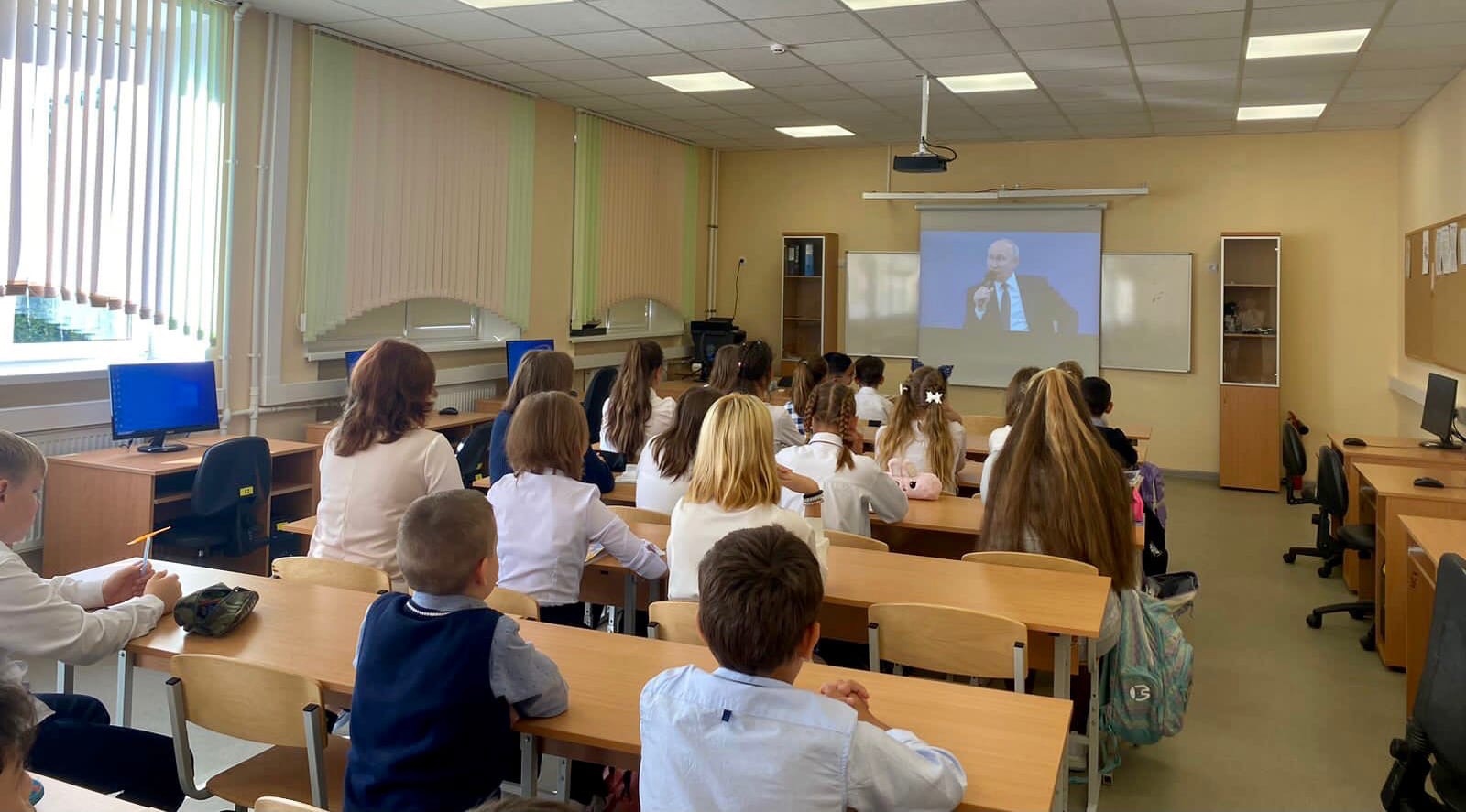 Далее обучающиеся отправились на очередное внеурочное занятие из цикла «Разговоры о важном» на тему: «Там, где Россия».